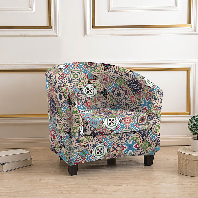 Club Chair Cover Striped Plants Geometric Printed Polyester Slipcover Stretch Armchair Protector for Living Room Home