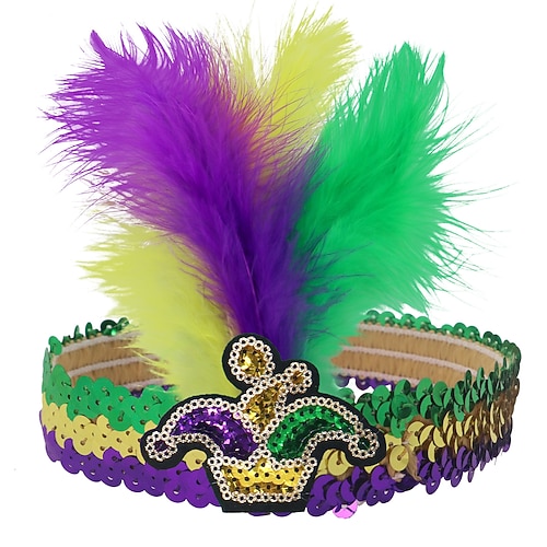 Mardi Gras 2026 Carnival Mask Feather Headpiece Cosplay Mardi Gras Colors Adults' Women's Carnival Mardi Gras Fat Tuesday Party Performance Easy Carnival Costume Dress Up