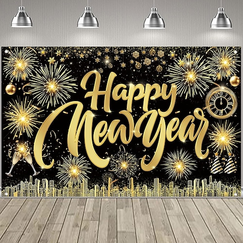 decorazioni nere e dorate per la festa di capodanno, sfondo con paillettes – striscione in tessuto nero e oro glitterato per la festa di capodanno 2026, cabina fotografica decorazioni per le feste