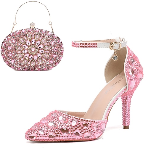 Per donna Cocktail Club Feste Strass Cristallo Fibbia Stiletto Punta a Punta Moda Carino Lussuoso PU Fibbia Argento Rosso arancione Nero e Viola