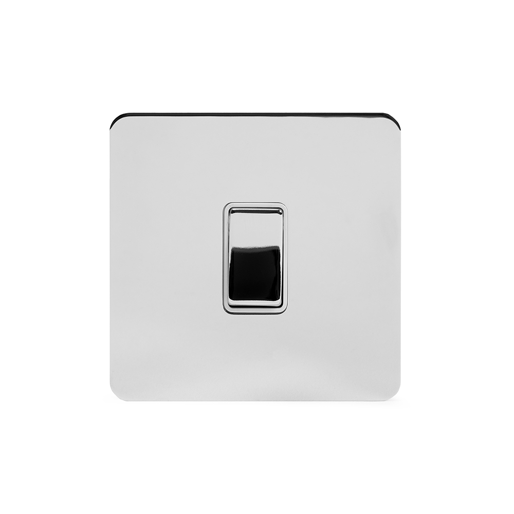 Click Deco 1 Gang 2 Way Ingot 10AX Switch Satin Chrome Black Inserts