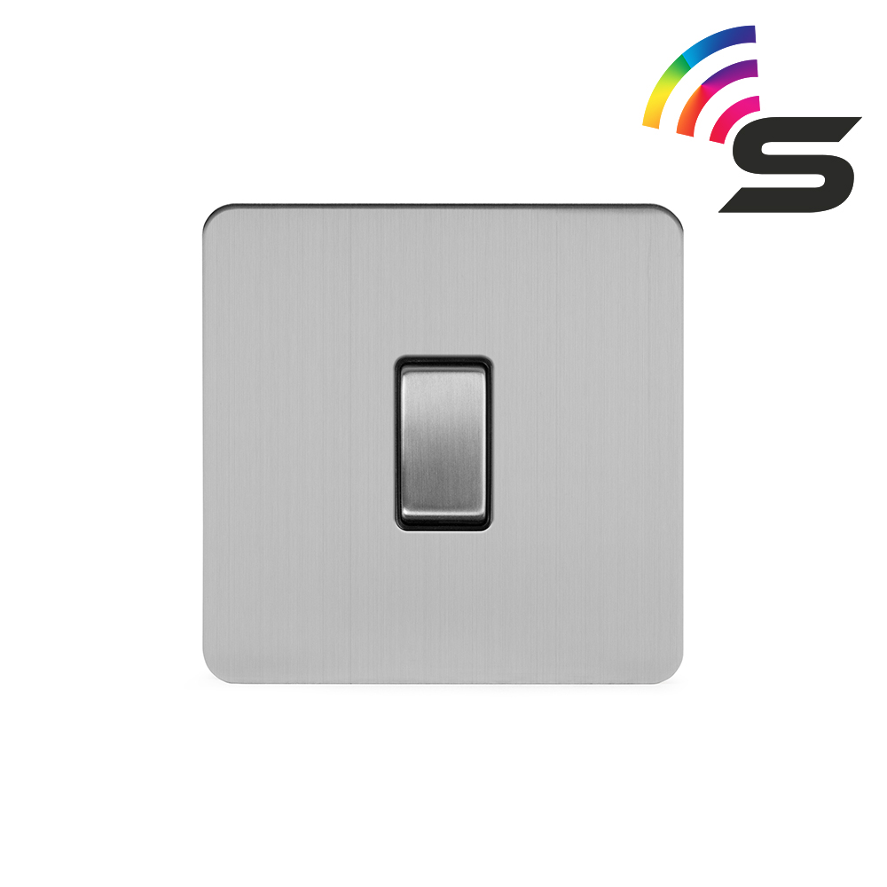 Soho Lighting Polished Chrome Flat Plate 1 Gang 150W Zigbee Smart Rocker Switch White Insert