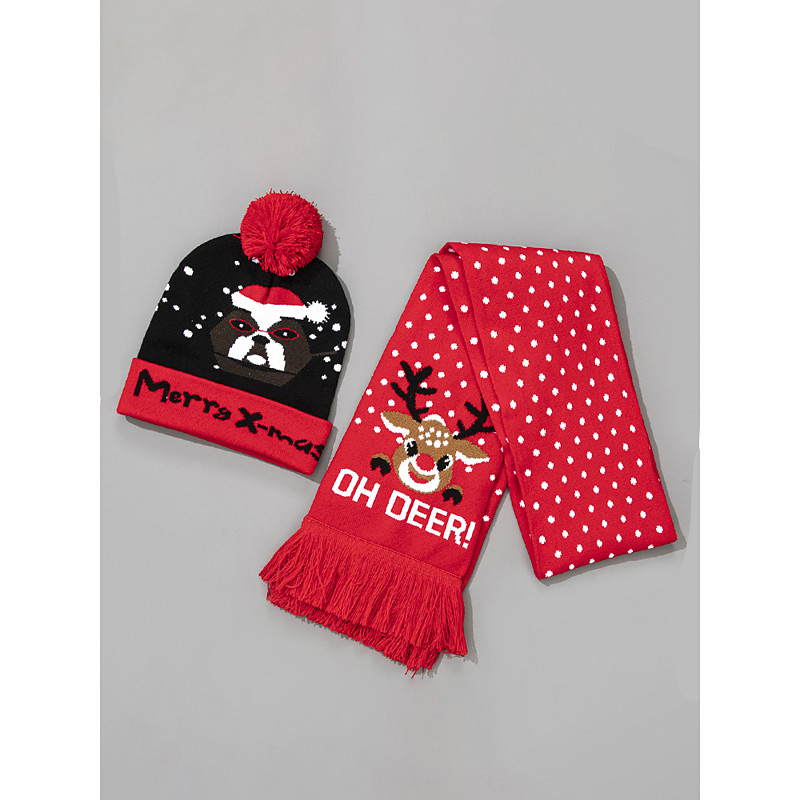 Women's Christmas Knit Hat and Scarf Set, Reindeer Design, Multiple Patterns, Cozy and Festive for Holiday Parties and Winter Wear