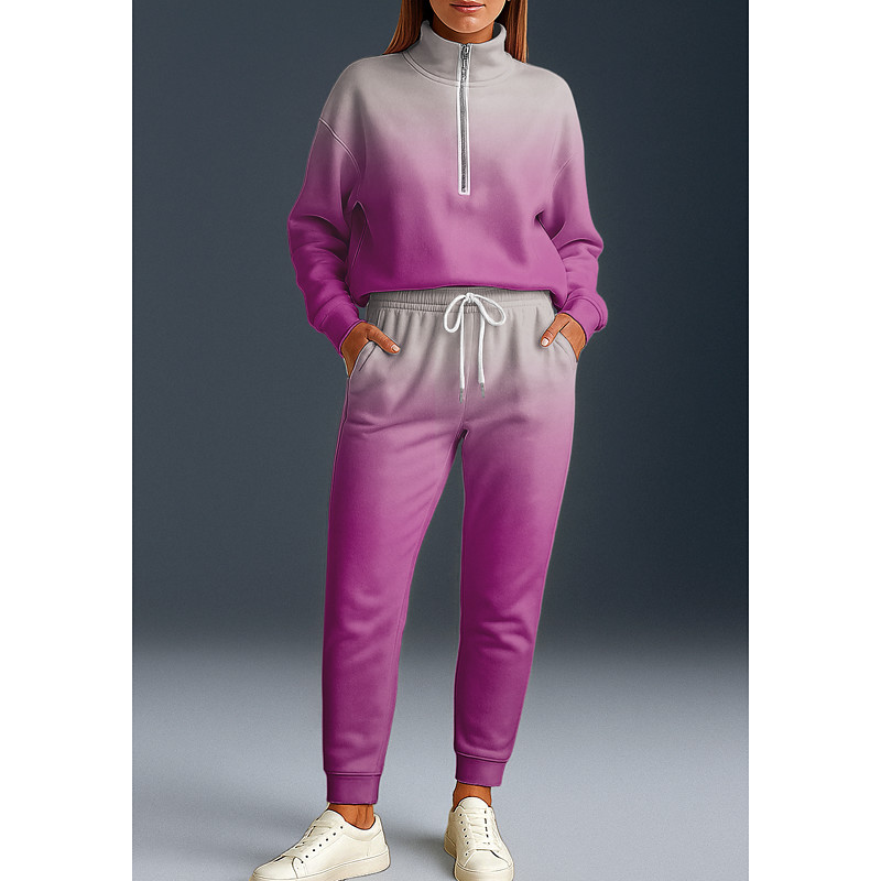 Women's Sweatshirt Tracksuit 2 Piece Tracksuit Baggy Color Gradient Clothing Suit Fall Light Brown Pink Vocation Outdoor Travel Lightweight Fashion Long Sleeve Sport Activewear Micro-elastic Regular