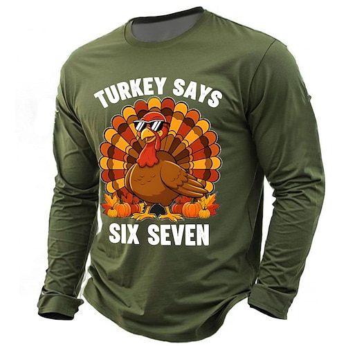 giorno del Ringraziamento Per uomo Turchia Gergo divertente Maglietta Manica Lunga maglietta Stampa 3D Girocollo Camicia Quotidiano Designer Streetwear Casuale Blu Nero Rosso Estate Primavera Autunno