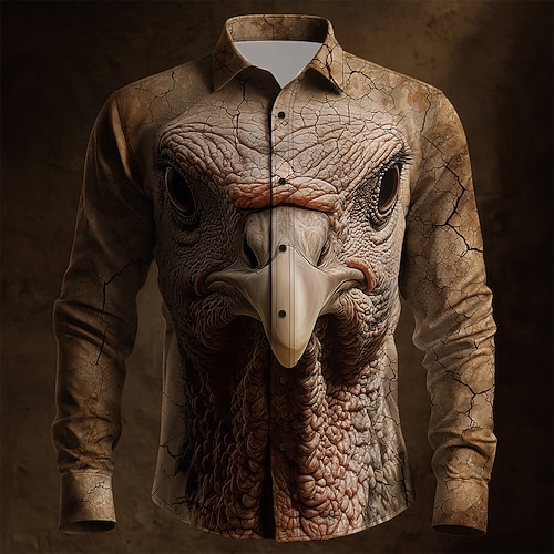 giorno del Ringraziamento Per uomo Illusione ottica Turchia Camicia Camicia con Bottoni Manica Lunga Vintage Retrò Ferie Primavera Autunno Collo ripiegato Stampa 3D camicie con colletto Marrone scuro