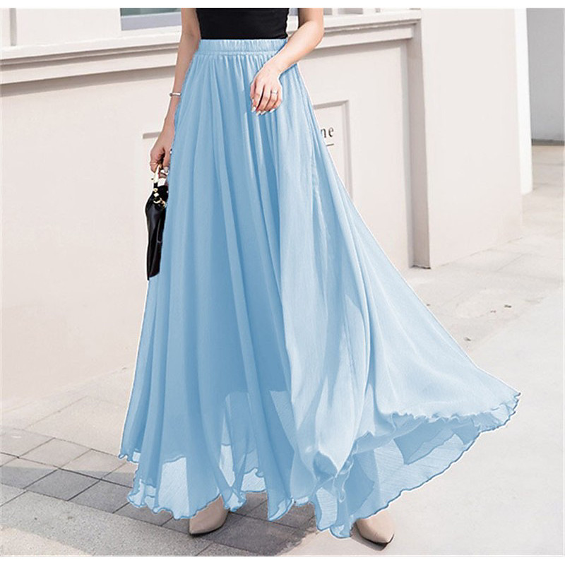 Women's Skirt Swing Work Skirts Long Skirt Maxi Skirts Chiffon Solid Colored Office / Career Daily Spring Summer Chiffon Elegant Long S