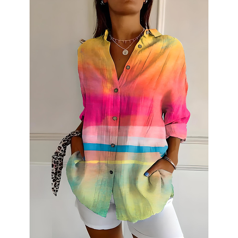 Women's Shirt Button Down Tunic Shirt Collar Long Sleeve Ombre Floral Graphic Bohemia Active Daily Regular Tops Work Daily s Print White Pink Blue Purple Orange Spring Fall