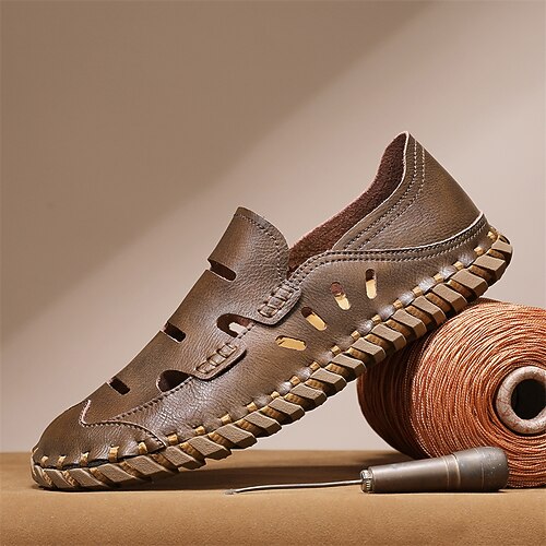 scarpe casual traspiranti da uomo in similpelle traforata, sandali comodi e antiscivolo per attività estive all'aperto e gite in spiaggia