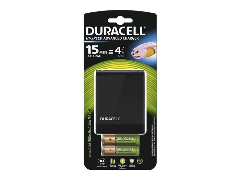Duracell CEF15 Erittäin nopea 15 minuutin laturi + 4 AA Active Charge -paristoa