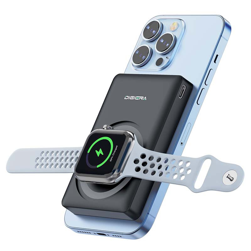 DigiEra Batterie Externe Magnétique 5000mAh, Charge Rapide 20W, Chargeur Portable Compatible MagSafe, Mode SSD Portable Magnétique, USB-C Entrée/Sortie, Batterie Compacte pour iPhone