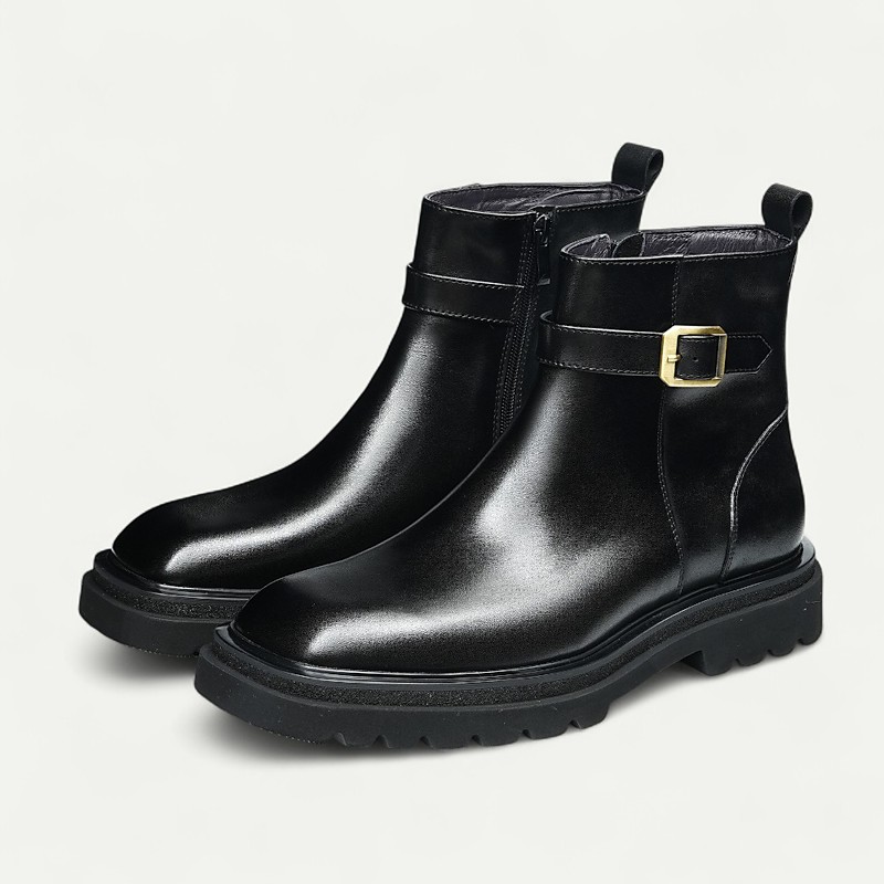 Men's Brown Buckle Ankle Boots Classic Side Zip Casual Boots with Decorative Strap for Office, Parties and Daily Outfits
