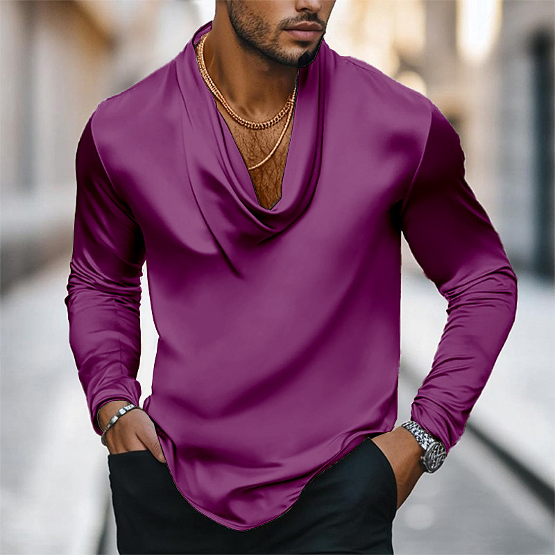 Men's Shirt Silk Like Satin Shirt Casual Shirt Plain Formal Wedding Black White Blue Purple Long Sleeve Cowl Neck Spring Fall All Seasons Clothing Apparel Ruched