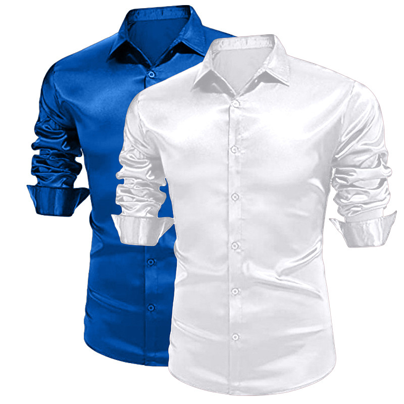 Men's Shirt Silk Like Satin Shirt Dress Shirt Button Up Shirt Plain Formal Wedding WhiteRed WhiteGreen WhiteBlack WhiteBlue Long Sleeve Lapel Spring Fall All Seasons Clothing Apparel Multi-pack
