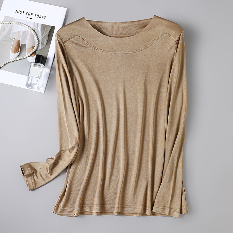 Women's Silk Blouse Plain Dressy Tops Elegant Stylish Long Sleeve Crew Neck Regular Tops Daily Holiday Going out Patchwork Black Green Khaki Gray Fall