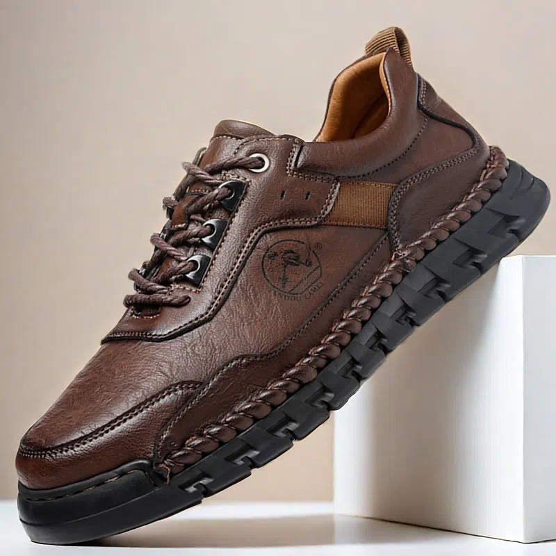 Men's Casual Brown Lace-Up Shoes – Comfortable Everyday Sneakers with Black Accents and Textured Sole