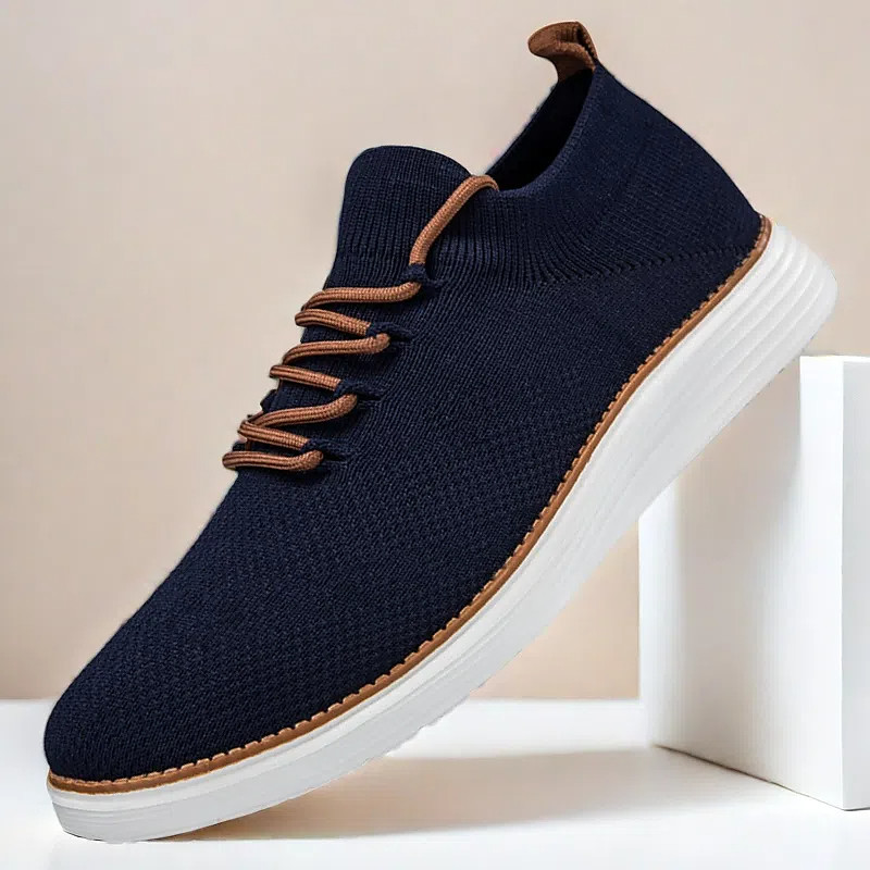 Men's Navy Blue Knit Sneakers with Lace-Up Design and Cushioned Sole for Comfortable Everyday Wear