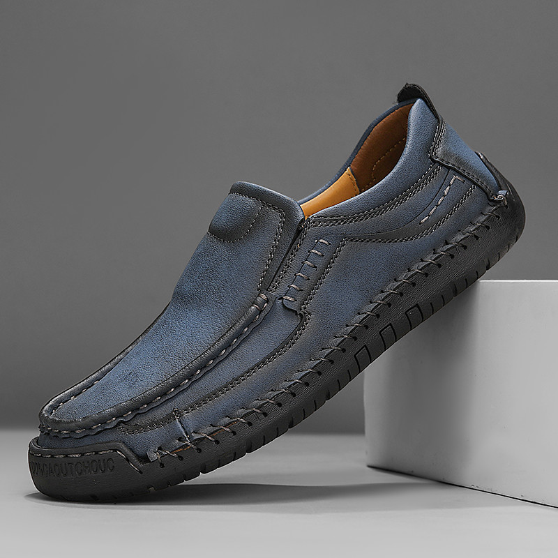 Men's Blue Faux Leather Sneakers with White Rubber Sole – Comfortable Lace-Up Sneakers for Sports, Travel and Casual Wear