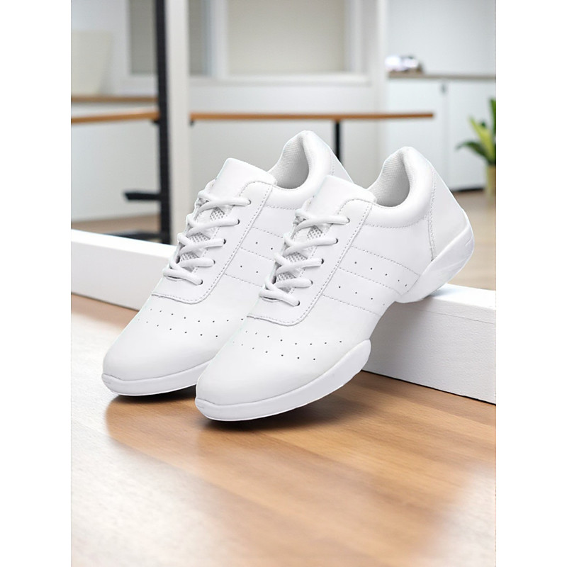 Women's White Leather Professional Dance Sneakers, Lightweight Split Sole Jazz Shoes for Latin, Hip Hop Ballroom Practice Training