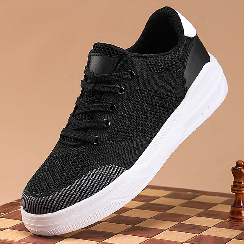 Women's Black Knit Sneakers with White Sole for Running and Casual Wear
