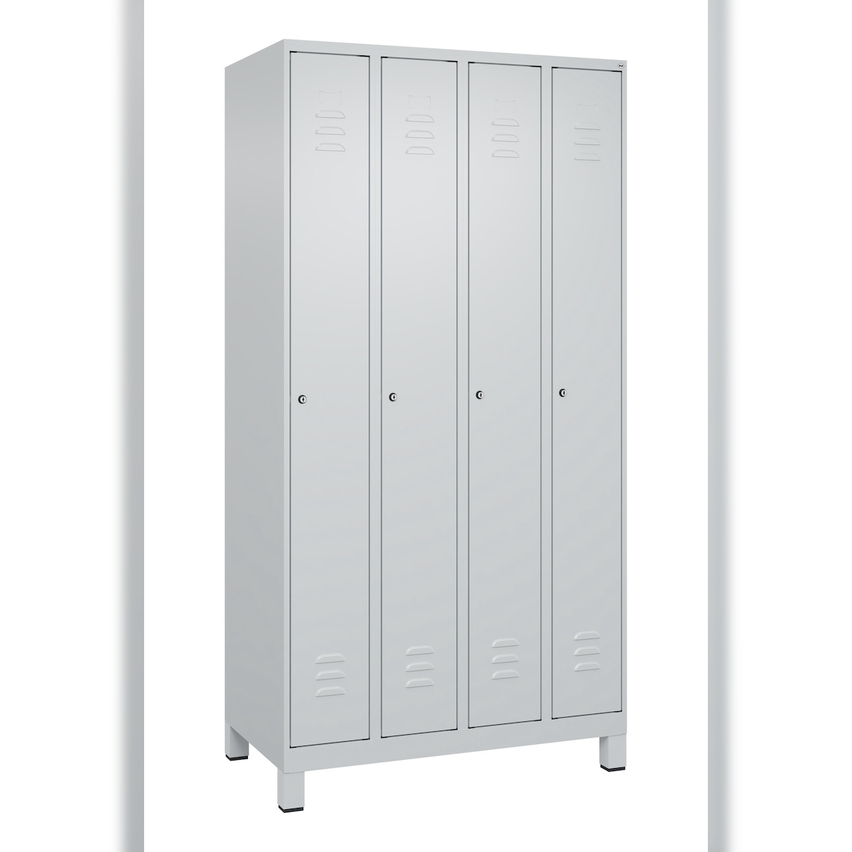 C+P Spind Classic PLUS, Füßen, 4 Abteile, HxBxT 195x100x50cm, Zylinderschloss, Hellgrau/Hellgrau von PROREGAL