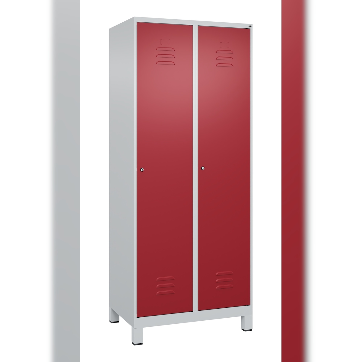 C+P Spind Classic PLUS, Füßen, 2 Abteile, HxBxT 195x80x50cm, Zylinderschloss, Hellgrau/Rubinrot von PROREGAL