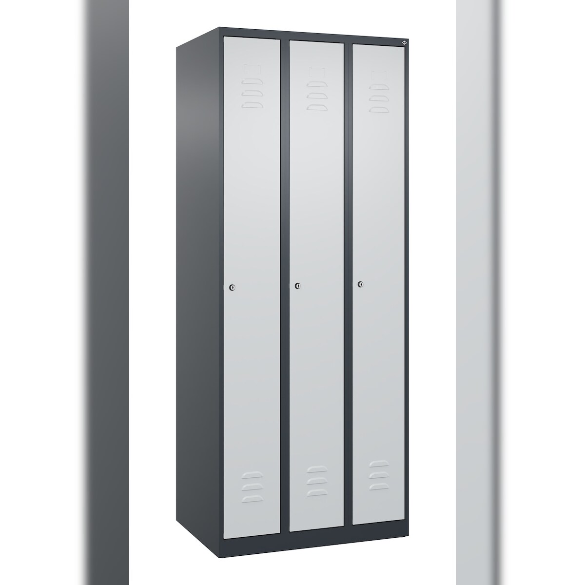 C+P Spind Classic PLUS, 3 Abteile, HxBxT 185x75x50cm, Zylinderschloss, Anthrazit/Hellgrau von PROREGAL