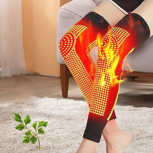 1 paio di ginocchiere autoriscaldanti per agopressione in tormalina, ginocchiere termiche bifacciali in artemisia per uomo donne, tutore caldo per il supporto delle articolazioni per gambe fredde,