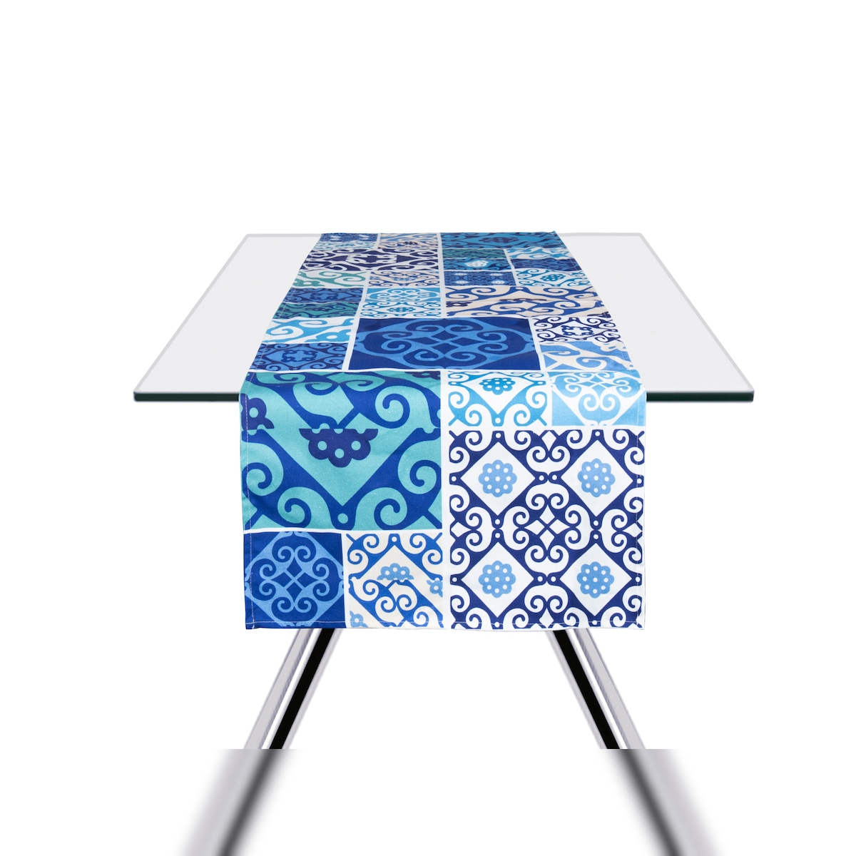 Excelsa Tischläufer Maiolica Blau Baumwolle 45X140 Cm Bunt