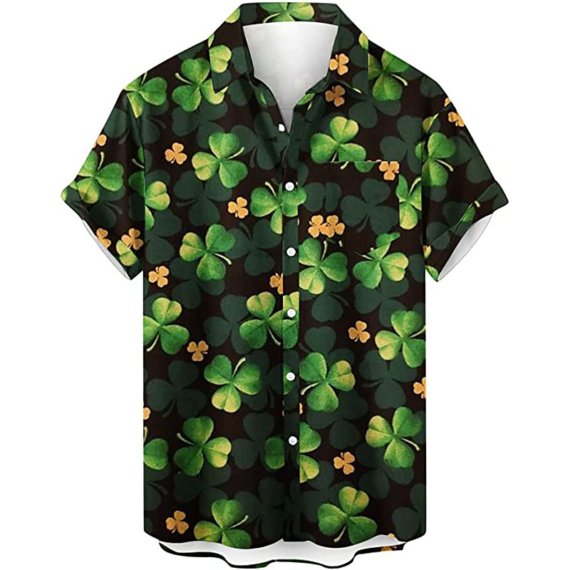 St.Patrick's Day Men's Shirt Summer Hawaiian Shirt Graphic Prints Saint Patrick Day St. Patrick's Day Clover Turndown Light Yellow Green / Black Olive Green Black Army Green Army GreenArmy Green