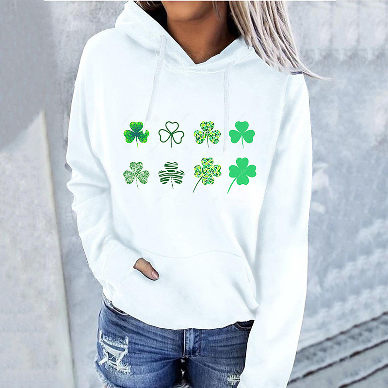 Women's Shamrock Active Sportswear Long Sleeve Hooded Regular Tops St.Patrick's Day Casual Sports Drawstring Print Front Pocket Grass Green Olive Green Light Green Dark Green Green Fall Winter