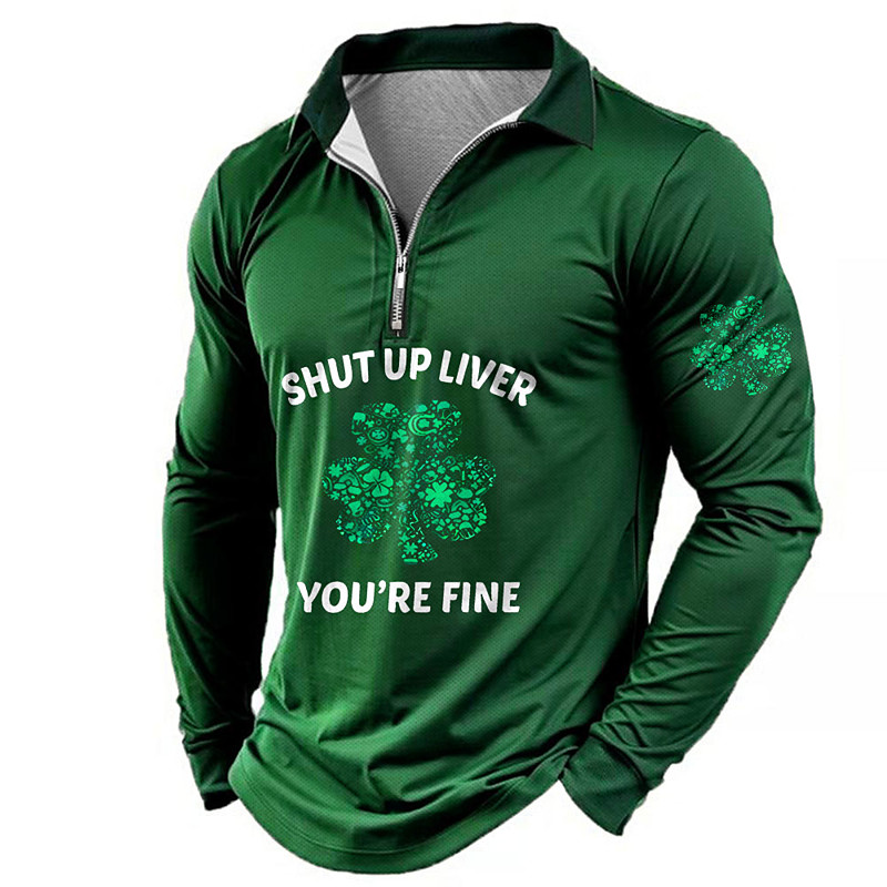 Men's Letter Printed Zip Polo Shirts Golf Shirt Long Sleeve Polo Shirts Collared Shirts Vintage Casual Outdoor Street Dailywear 3D Print Quarter Zip Polo Spring Fall Winter Black Green
