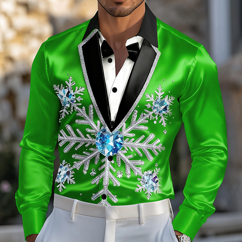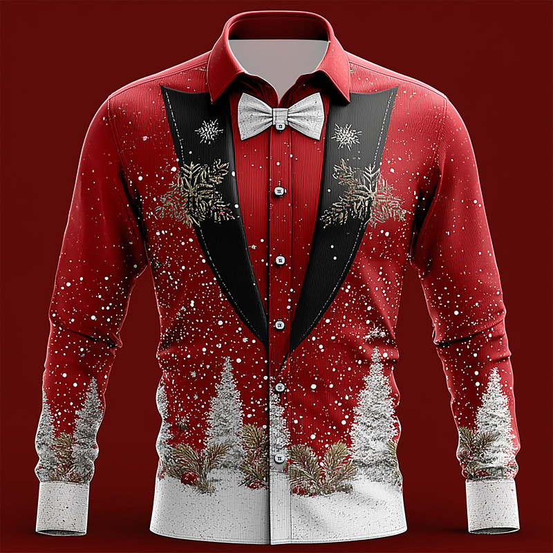 Christmas Men's Snowflake Christmas Costume Suit Tie Printed Tuxedo Shirt Button Up Shirt Long Sleeve Funny Outdoor Holiday Spring Fall Turndown 3D Print Collared Shirts Red 1 Red 3 Red Red 2
