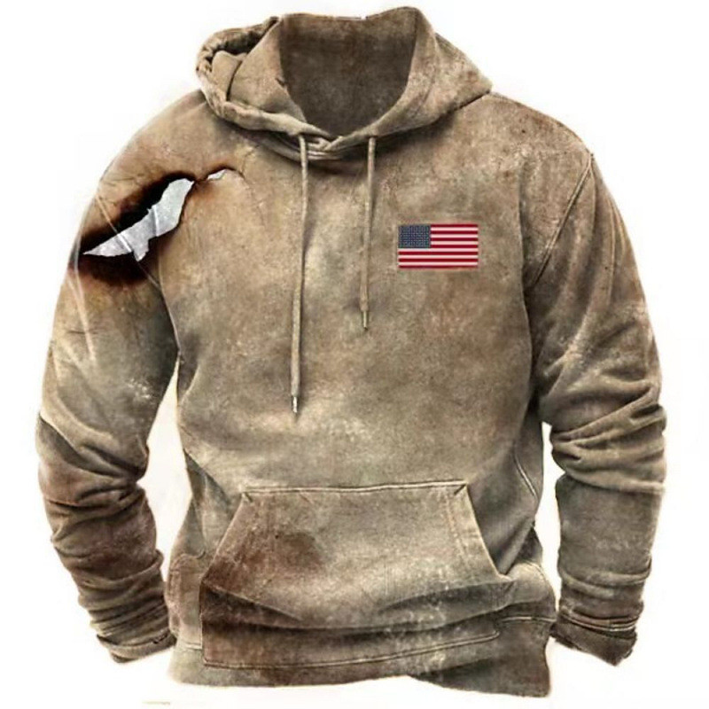 Men's Graphic American Flag Hoodie Pullover Hoodie Printed Hoodie Fashion Streetwear Casual Hooded Outdoor Vacation Going out Khaki Dark Gray Drawstring Pocket Print Spring Fall Designer S M L XL 2XL