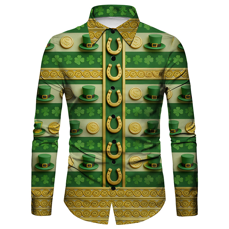 St.Patrick 2026 Retro Vintage 1970s Shirt Aloha Shirt Long Sleeves Hippie Fancy Dress Men's Masquerade 4th of July Party Festival Adults' Shirt