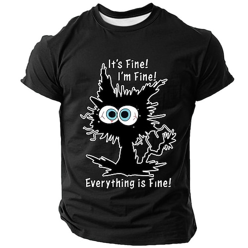 Alles gut, mir geht's gut, alles ist gut – lustiges T-Shirt mit Katzenmotiv, sarkastischem Humor zum Thema psychische Gesundheit und Chaos, Geschenkidee, Kleidung, Größen: S, M, L, XL, XXL, XXXL