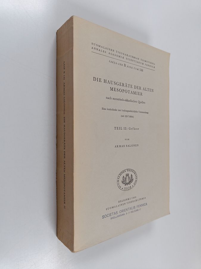 Armas Salonen : Die Hausgeräte der alten Mesopotamier : nach sumerisch-akkadischen Quellen : eine lexikalische und kulturgeschichtliche ...