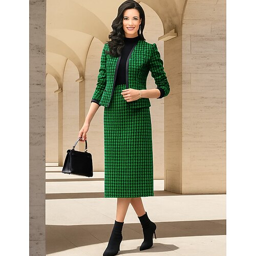 Abito a Colonna a Due Pezzi Lunghezza Tè Abito da Festa Abito da Cocktail Abito da Sposa O-Line Abito per la Madre della Sposa Maniche Lunghe V Neck Elegante Vintage Formale da Festa con Colore Blocco