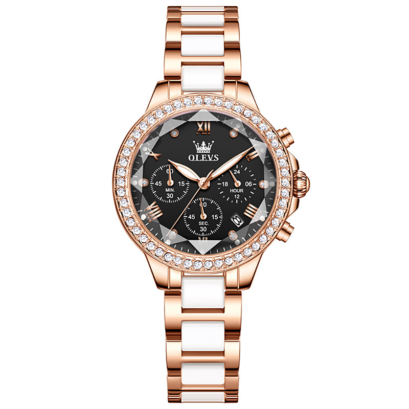 OLEVS Women Quartz Watch Luxury Fashion Rhinestone Business Stopwatch Calendar Waterproof Alloy Watch