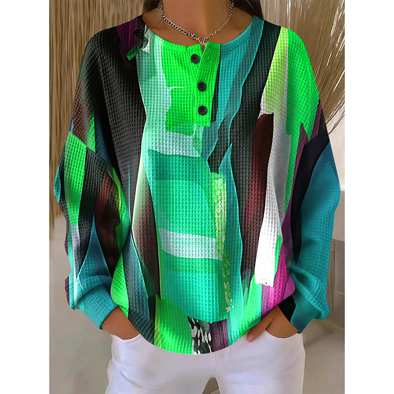 Women's Hoodies Graphic Geometric Color Block Fashion Casual Print Long Sleeve Crew Neck Round Neck Regular Tops Casual Street Buttons Purple Orange Green Spring Fall Winter