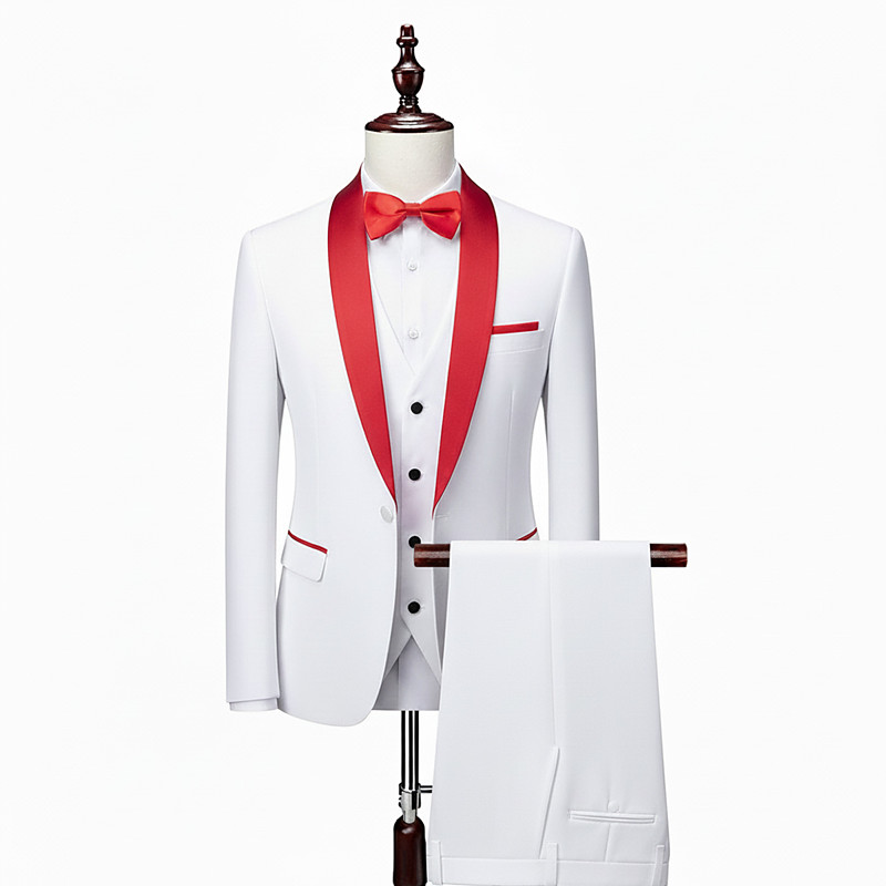 Men's Casual Christmas Party Suits Peaked Lapel White Red Ugly Punk Solid Colored Slim Fit 2 Piece Single Breasted One-button