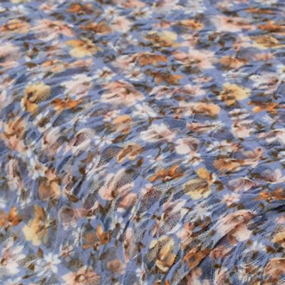 Tissu tull fin "fleurs et ornements", bleu clair