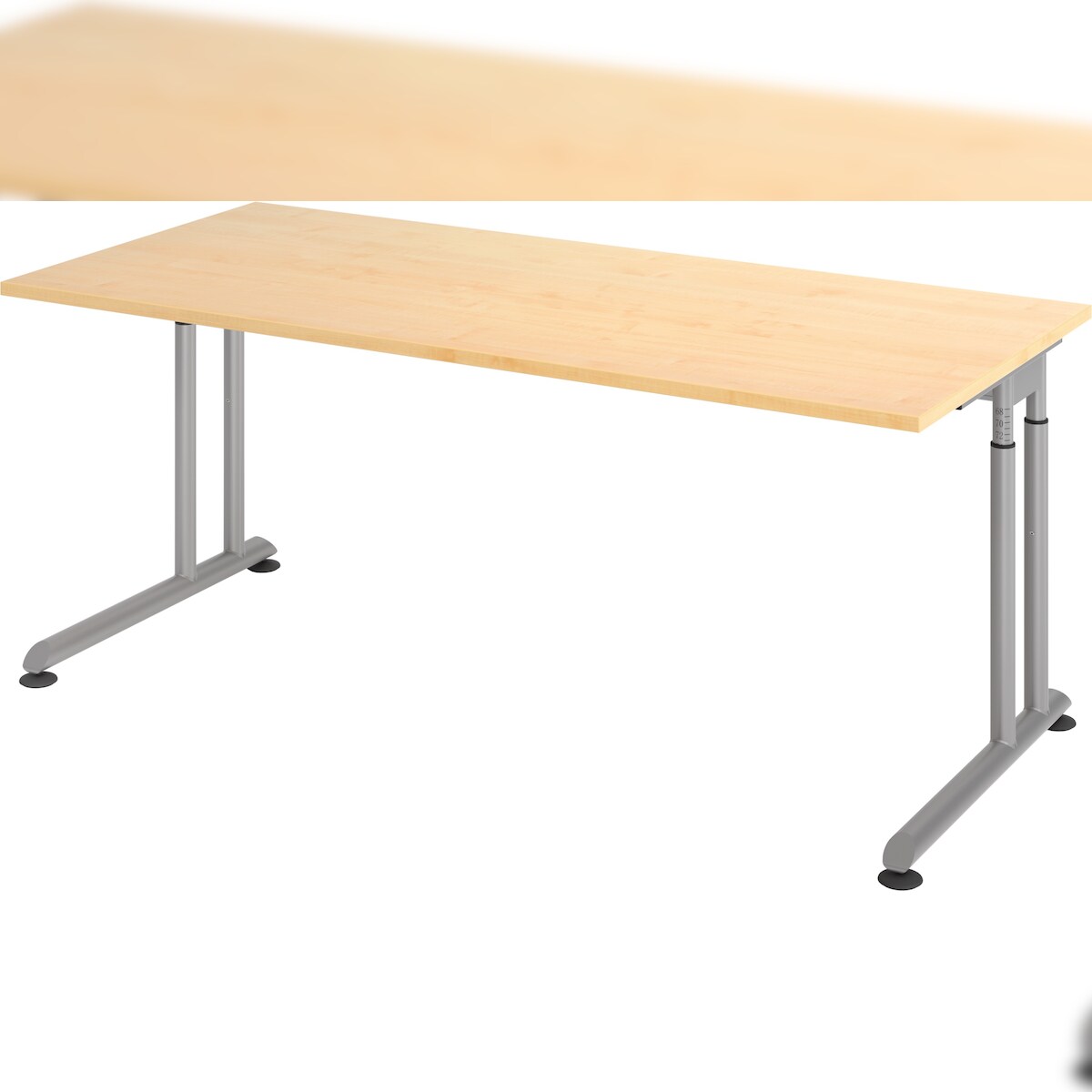 bümö höhenverstellbarer Schreibtisch Z-Serie 180x80 cm in Ahorn, Gestell in Silber - großer PC Tisch für's Büro manuell höhenverstellbar,