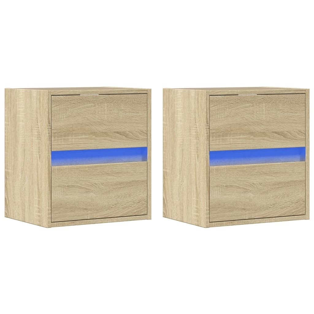 vidaXL TV-Wandschränke mit LED-Leuchten 2 Stk. Schwarz 30,5x35x30 cm