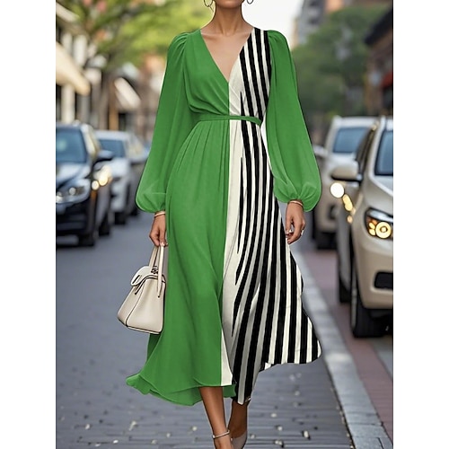Per donna Abito Midi Abito a trapezio Vacanza Casual Quotidiano Festa serale Feste Vestibilità regolare Grafico Geometrico Manica Lunga Scollo a V Rosa scuro Rosso Marrone Verde Estate Primavera