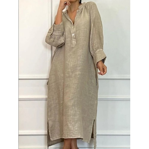 Per donna Abito Midi Abiti ispirati al lino Abito in cotone e lino Essenziale Classico Moderno Quotidiano Ferie Weekend Vestibilità regolare Semplice Manica Lunga Scollo a V Rosa Verde Albicocca
