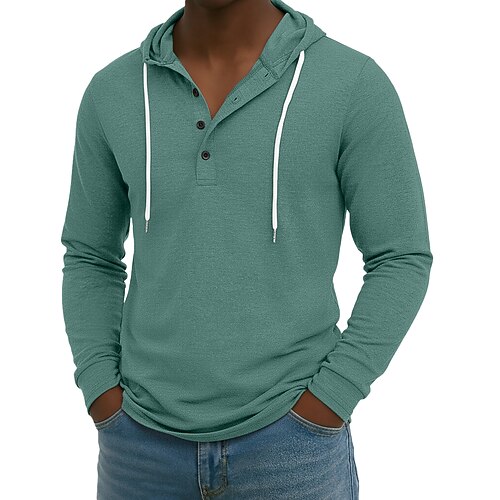 Per uomo Maglietta Felpa con cappuccio Henley Manica Lunga Colletto Henley Inverno Primavera Autunno Tinta unica Quotidiano Con cappuccio All'aperto Casual Casuale Rosa Bianco Nero Maglietta Top