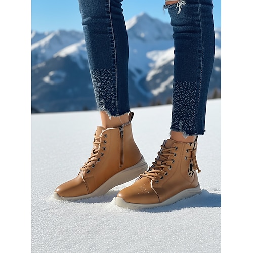 stivaletti da donna alti in pelle marrone chiaro con stampa leopardata – stivaletti casual alla caviglia con lacci e cerniera laterale per camminare, viaggiare e street style