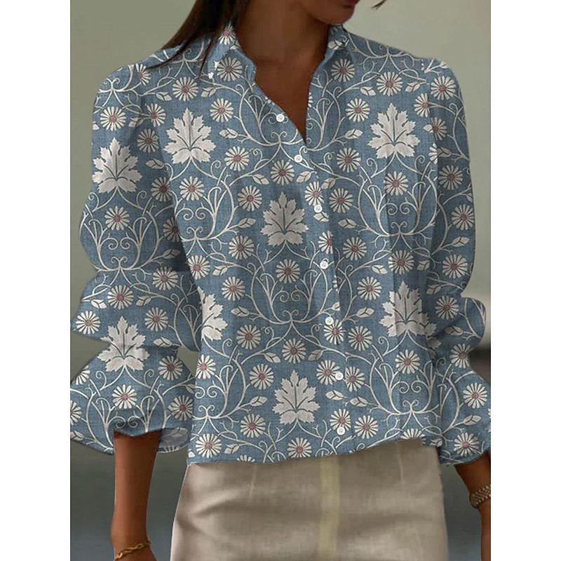 Women's Shirt Floral Graphic Elegant Bohemia Vintage Long Sleeve Shirt Collar Regular Tops Daily Work Holiday Ruffle Blue White Pink Orange Summer Spring