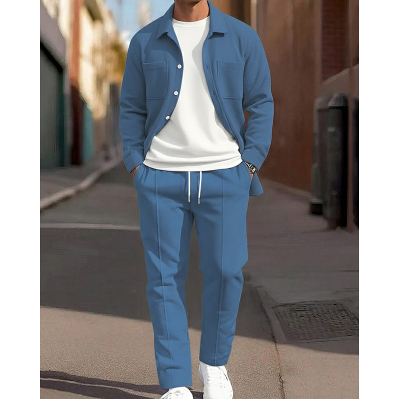 Men's Sweatshirt Tracksuit Set Lapel Outdoor Vacation Daily Button Up Pocket Plain Blue Black Army Green Activewear Sports Fashion Fall